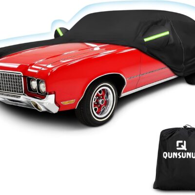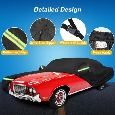 QUNSUNUS Waterproof Car Cover for Oldsmobile Cutlass 1966-1980/1988, Outdoor Car Cover with Zipper, Full Exterior Car Covers for Automobiles All Weather with Wind, Sun, UV and Dust Protection