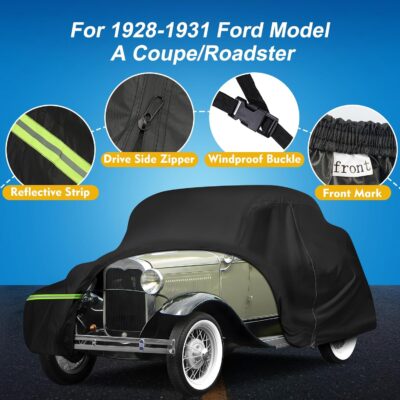 QUNSUNUS Waterproof Car Cover for Ford Model A Coupe/Roadster 1928-1931, All Weather Outdoor Car Covers with Zipper and Elastic Edges for Wind, Sun, UV and Dust Protection