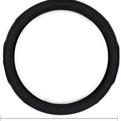 QianBao Genuine Leather Car Steering Wheel Cover Black for 13.5 to 14.2 inches Steering Wheels, Sweat Absorbent (Black)