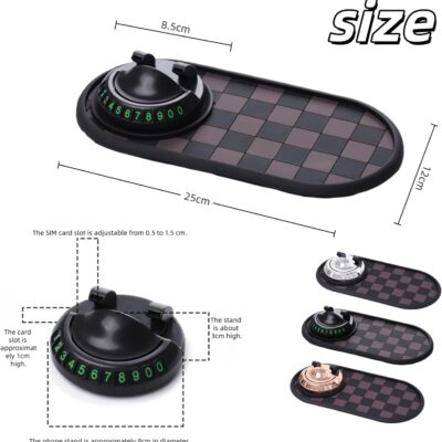 Car Dashboard Mat Kit: 360° Rotating Phone Holder, Parking Number Plate, Universal Anti-Slip Organizer Pad (Luxury Gold)