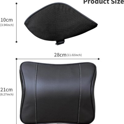 Quintor Genuine Leather Car Neck Pillow,Memory Foam Headrest Cushion, Ergonomic Cervical Support for Tesla Model 3/Y/X, Lexus, BMW- Breathable & All-Season Soft (2 PC)