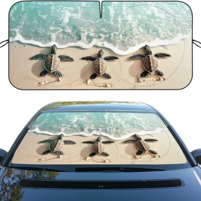 Summer Car Windshield Sun Shade – Baby Sea Turtles Beach Wave Design – UV Blocking Front Window Sunshade for Sedan, Truck, SUV – 59″ L x 31.5″ W