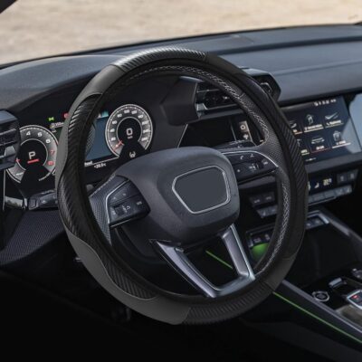 Car Steering Wheel Cover, 15 inch Carbon Fiber Microfiber PU Leather Elastic Steering Wheel Protector, Universal Car Accessories (Gray)