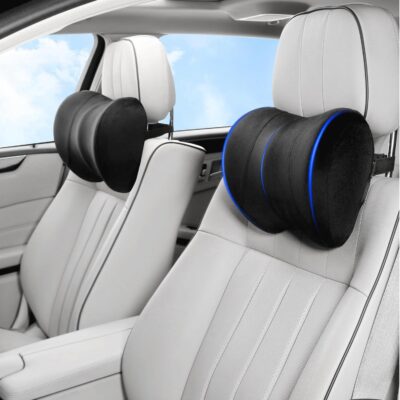 Car Neck Pillow Adjustable Up and Down Style 2 Pack,Car Headrest Pillow for Neck Support Relieves Driving Fatigue, Soft Memory Form and Ergonomic Design Fits Most Heights and Car Seats (Black)