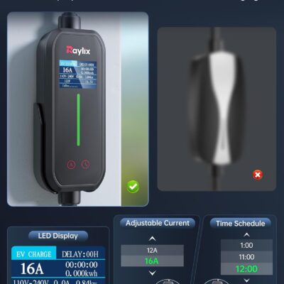 12A-16A Level 1&2 Charger for tesla Adjustable Current, Delay Charge & Smart Display NACS Mobile/Home Charger, 21ft Mobile Connector Cable for Model X/Y/3/S/Cybertruck, NEMA 6-20/5-15 Plug, 110-240V
