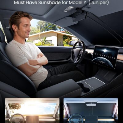 REEVAA Upgraded for Tesla New Model Y 2016-2026 (Juniper) Windshield Sunshade [Tailored Fit, 99% Sun Protection] Foldable Sun Shade Car Accessories with Storage Bag