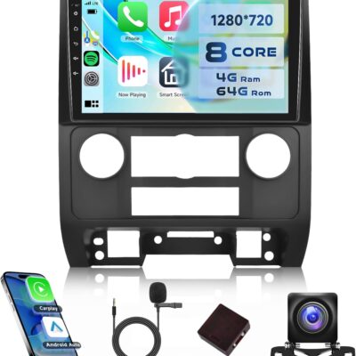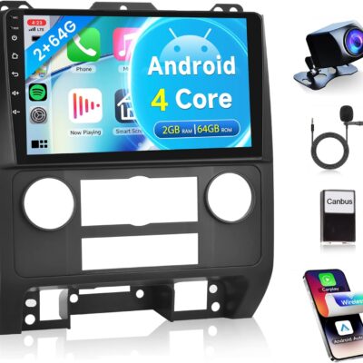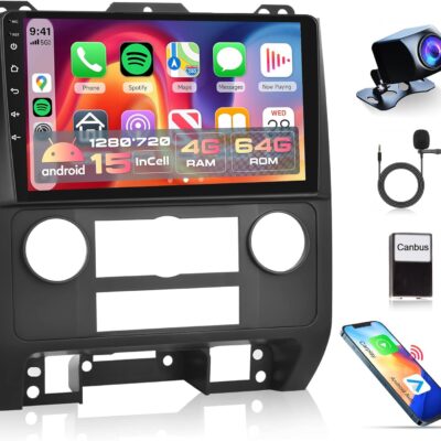 Rimoody Android 15 Car Radio Wireless Carplay for Ford Escape 2007-2012/Mazda Tribute 2007-2012, 4Core 4G+64G Car Stereo Android auto GPS 5G-WiFi EQ Bluetooth 9 Inch Touch Screen Backup Camera
