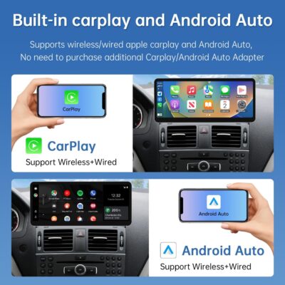 Road Top 12.3″ Ultra-Narrow CarPlay Screen Upgrade for Mercedes-Benz C-Class W204 (2008-2010 NTG4.0), Wireless CarPlay & Android Auto, Linux Touchscreen Display Retrofit, OEM Integration Car Stereo
