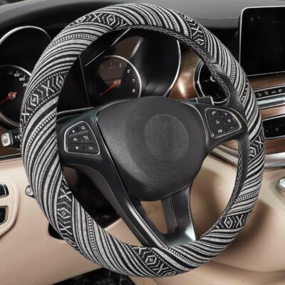 SEG Direct Boho Steering Wheel Cover with Baja Blanket Cloth, Ethnic Style Auto Wheel Cover Made of Coarse Flax, Fits 14 1/2-15 1/4 inches Car Wheel