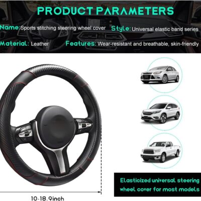 Car Steering Wheel Cover, 15 inch Carbon Fiber Microfiber Leather Elastic Steering Wheel Protector, Breathable Anti-Slip Comfortable Steering Wheel Covers for Most Cars (Black)