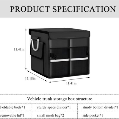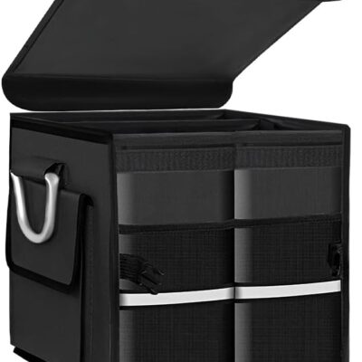 Trunk Organizer With Lid, Collapsible Waterproof Oxford Car Organizer with Aluminum Handle Base Plate, 2-Compartment 28L Sturdy Trunk Cargo Storage Organizer for RV SUV Truck (Black)