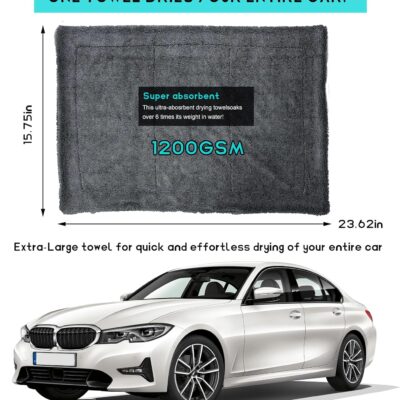 Microfiber Towels for Cars, 15.7″x23.6″ 1200 GSM Ultra Thick Soft Car Detailing Drying Towel, Super Absorbent Double Twisted Loop Cloth Cleaning Towel for Car Truck SUV