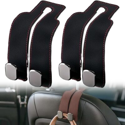 Suede Leather Car Seat Hook, 2026 New Car Seat Back Storage Hook, Car Purse Hook Seat Back Hanger Storage Organizer, With Double Metal Hooks, Car Seat Headrest Hooks for Purses Bag (2pcs – Black)