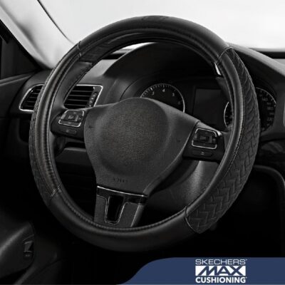 Skechers Steering Wheel Cover,Max Cushioning Leather Steering Wheel Cover Universal Fit 14″ 1/2-15″ Car Wheel Protector for Men Women Fit Suvs,Vans,Sedans,Car,Trucks,Black