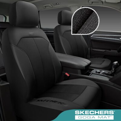 Skechers Men’s Memory Foam Seat Covers, Air Cool Mesh Thick Car Seat Covers, Car Seat Covers Front Seats Airbag Compatible, Universal Automotive Comfort for Most Cars, Vans, Trucks, SUV,Black