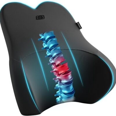 Skechers Air-Cooled & Memory Foam Lumbar Pillow,Lumbar Support Pillow for Office,Chair Lower Back Pain Relief Lumbar Pillow,Ergonomic Design Back Support Pillow for Office Chair,Car,Home,Travel,Black