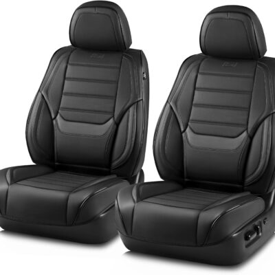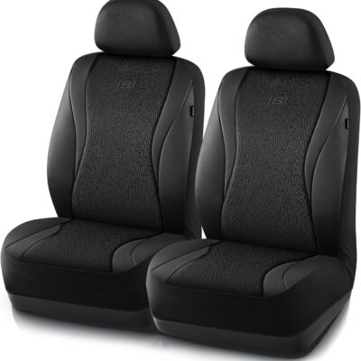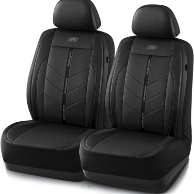 Skechers Car Seat Covers,Luxury Faux Leather Seat Covers,Waterproof Anti Slip Car Seat Protector Front Seats,Car Accessories Airbag Universal Fit for Most Cars,Vans,Trucks,SUV,Black