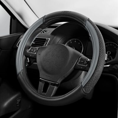 Skechers Air-Cooled Steering Wheel Cover,Leather Car Steering Wheel Cover Universal Fit 14″ 1/2-15″ Car Wheel Protector for Men Women Fit Suvs,Vans,Sedans,Car,Trucks,Gray