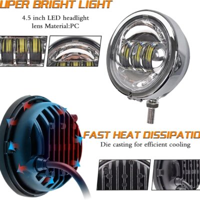 SKTYANTS 4.5 Inch LED Passing Light Motorcycle Fog lights with 4.5 Inch Housing Bucket Bracket Mount Compatible with Touring Electra Glide (Chrome)