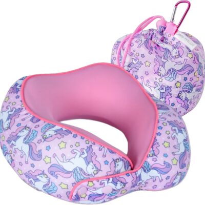 SKYTRAX® Certified Kids Safe Memory Foam Travel Neck Pillows for Kids and Toddlers, Cute Cartoon Design, Car Seat & Airplane Head Neck Support, Adjustable Snap Buttons, Washable Soft Cover (Unicorn)
