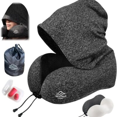 Travel Pillow with Extra Large Hood for Airplane Long Flights Privacy and Comfort Memory Foam with Skin-Friendly Cover for Road Trip Head&Neck Support for Plane Office Cars Sleeping & Rest (Grey)
