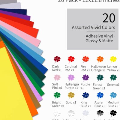 Permanent Vinyl – 20Pack Adhesive Vinyl Sheets Assorted Colors, Permanent Bundle, 12″ x 11.8″ Waterproof Outdoor Perfect for Home Decor Car Decal Sticker
