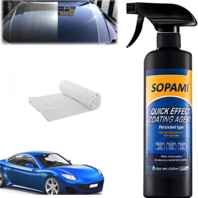 Sopami Car Coating Spray,Quick Effect Coating Agent,Quickly Coat Car Wax,Car Scratch Wax Polish Spray Waterless Wash,Oil Film Emulsion Glass Cleaner with towel (1 pcs)