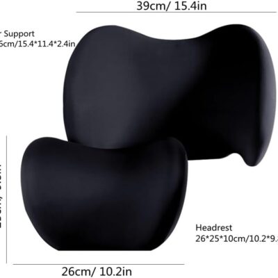 Car Lumbar Support Pillow and Car Neck Pillow Kit, Ergonomic Car Seat Headrest & Lumbar Cushion with Adjustable Strap for Neck Back Pain Relief, for Office Chair/Truck/Wheelchair (Gray)