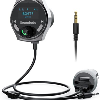 Bluetooth Aux Adapter for Car, Aux Bluetooth Receiver with USB Car Charger, Support Music/Hands-Free Calling/Home Stereo, Enhanced Mic/LED Display