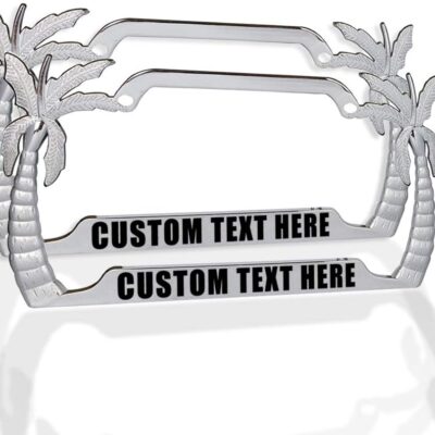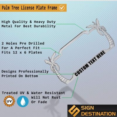 Speedy Pros Palm Tree License Plate Frame Custom Personalized Text Metal Weatherproof Car Accessories License Plate Holder Chrome 2 Holes Set of 2
