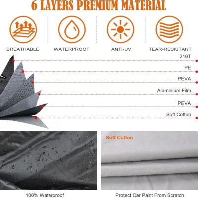 Waterproof Car Covers Replace for 2007-2025 Subaru Impreza Hatchback, 6 Layers All Weather Car Cover with Zipper Door & Windproof Bands for Snow Rain Dust Hail Protection