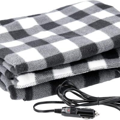 Heated Blanket – 12-Volt Electric Blanket for Car, Truck, SUV, or RV – Portable Winter Car Accessories for Camping or Travel by Stalwart (Black Plaid)