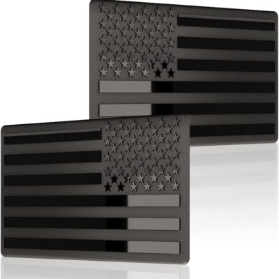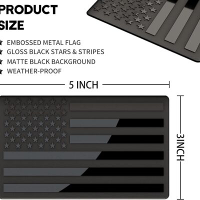 Embossed 3D Metal All Black American Flag Emblem Decal Stickers (1 Pair), Matte Black 5″ x 3″ Patriotic USA US Flag Car Decals Bumper Stickers for Truck, Window, Motorcycle, Support US Military