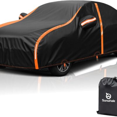 Car Cover Waterproof All Weather for Automobiles Winter Snowproof Rain UV Protection Heavy Duty Outdoor Sedan Car Cover & Car Snow Cover Universal Fit for Sedan Length Up to 194’’