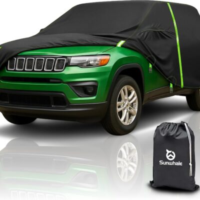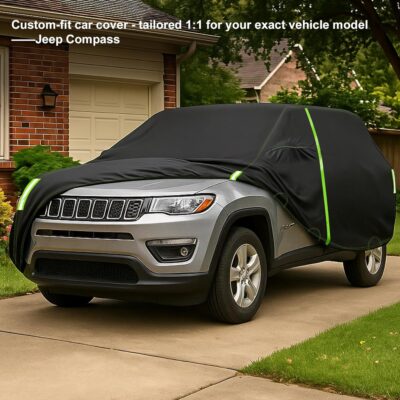 Custom Fit for Jeep Compass Car Cover 2007-2025 Compact SUV Covers 100% Waterproof with Zipper Door & Side Mirror Pockets All Weather Snowproof Rain Hail UV Protection Outdoor Full Cover