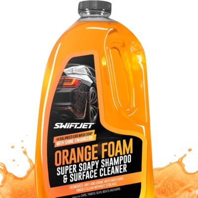 SwiftJet Orange Foam Car Wash Soap – pH Balanced Super Soapy Shampoo & Surface Cleaner – Thick Foaming Suds for Cars, Trucks, SUVs & Boats – Streak-Free Shine, Safe on Wax & Sealant (64 FL OZ)
