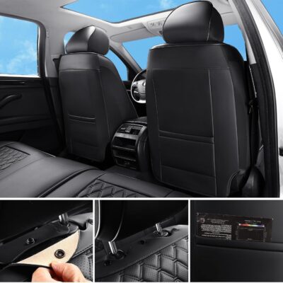 Car Seat Covers Full Set Black, Luxury Faux Leather Car Seat Covers Waterproof Non-Slip Seat Protector Universal Fit for Most Cars SUVs Trucks Pick-ups,Car Accessories for Front Seats and Back