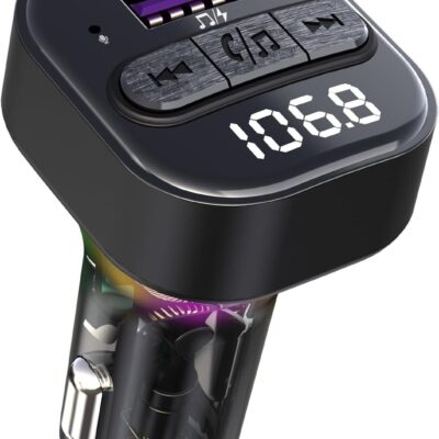 Bluetooth 5.3 FM Transmitter for Car, Bluetooth Car Adapter with Type-C PD(30W) Charger and QC3.0 USB Port, Wireless FM Radio Transmitter, Support MP3 Player, Handsfree Calling, LED Backlit,U Disk