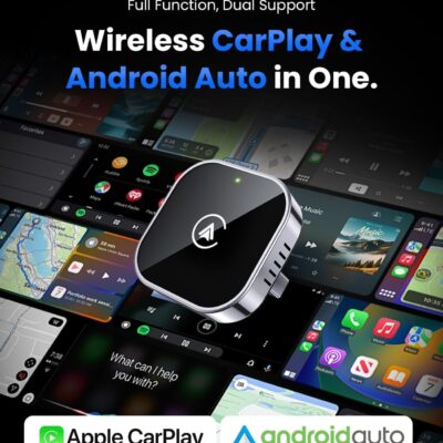 Teeran 2 in 1 Wireless CarPlay and Android Auto Adapter, Easy Setup Plug and Play, Fast Seamless Use Supports 1000+ Cars with Built-in Wired Car Play/Android Auto Compact Sleek Design Car Adapter