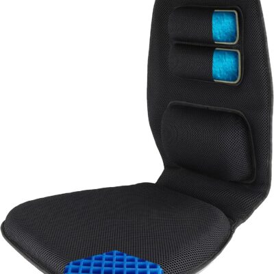 Tektrum Orthopedic Gel Seat Cushion and Firm Back Support Lumbar Pillow for Car, Home/Office Chair, Travel – Relief for Tailbone, Sciatica, Coccyx, Back Pain, Improve Posture (TD-GS19041-BLK)