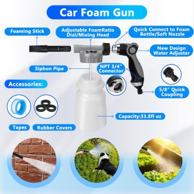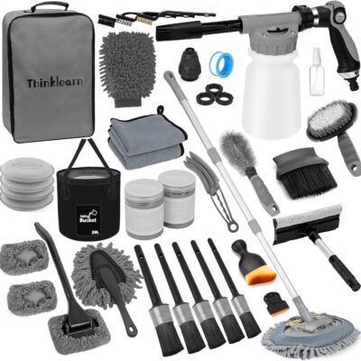 ThinkLearn Car Wash Detailing Kit with Foam Gun, Car Cleaning Kit Set,Car Wash Brush with Long Handle, Large Folding Bucket for Interior Exterior Car Wash Supplies, Car Gift Set Gray