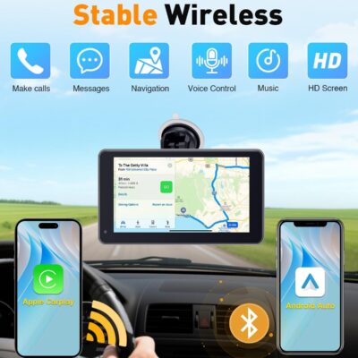 7” Wireless Apple CarPlay & Android Auto Screen – Portable Car Display with AirPlay, Screen Mirroring, FM/AUX Audio, Easy to Install, Convenient Upgrade for Older Cars, Families, Commuters
