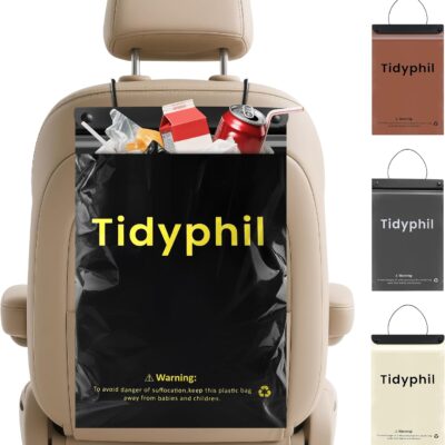 50 PCS Disposable Car Trash Bags Hanging, Leak-proof, Odor Seal. 2 Gallon Car Garbage Bags, Big Capacity. Independent of Car Trash Can, Easy Stick-On Car trash Bin for Car, SUV, Truck, Stroller. Black