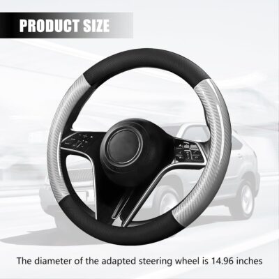 Carbon Fiber Car Steering Wheel Cover, 15 Inch Leather Breathable Anti-Slip Vehicle Steering Wheel Protector, Automotive Interior Accessories, Universal for SUV Sedan Truck (Gray)