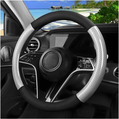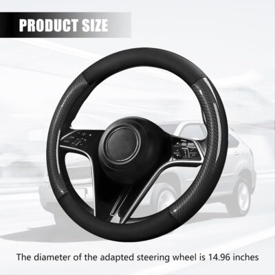Carbon Fiber Car Steering Wheel Cover, 15 Inch Leather Breathable Anti-Slip Vehicle Steering Wheel Protector, Automotive Interior Accessories, Universal for SUV Sedan Truck (Black)