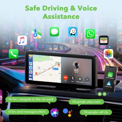6.86″ Wireless CarPlay Screen for Apple Carplay and Android Auto, Dual Dash Cam 2.5K Front 1080P Rear Recording, Voice Control, GPS Navigation, Mirror Link, Bluetooth, FM, AUX, Fits Most Cars