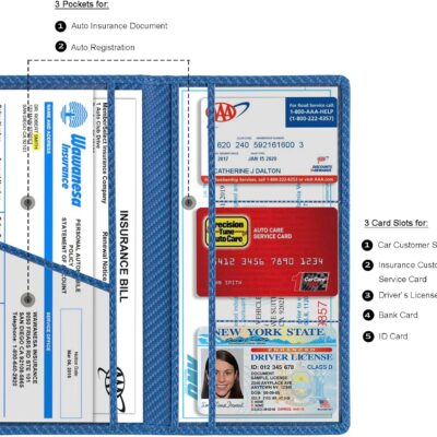TOURSUIT Car Registration and Insurance Card Holder, Vehicle License Document Glove Box Compartment Organizer, Essential Car Wallet Case for Driver Auto Owners (Carbon Blue)