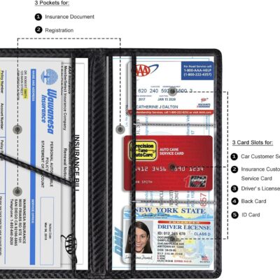 TOURSUIT Car Registration and Insurance Card Holder, Vehicle License Document Glove Box Compartment Organizer, Interior Car Accessories for Women Men Teens (Carbon Fiber Black)