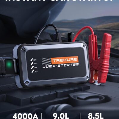 TREKURE Portable Car Battery Jump Starter 4000A 16800mAh Jump Box, Car Battery Jumper Starter Portable Jumper Cables for car(8.0L Gas/6.5L Diesel), Fast Charge, Lights, Compact