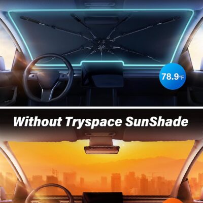2026 TrySpace Car Windshield Sun Shade Umbrella – [Silver Heat Shield & UV Reflective] Protector for Cars, Universal Fit Medium (56″x31″) | 25°F Cooler, Friendly Vinyl Coatings Medium